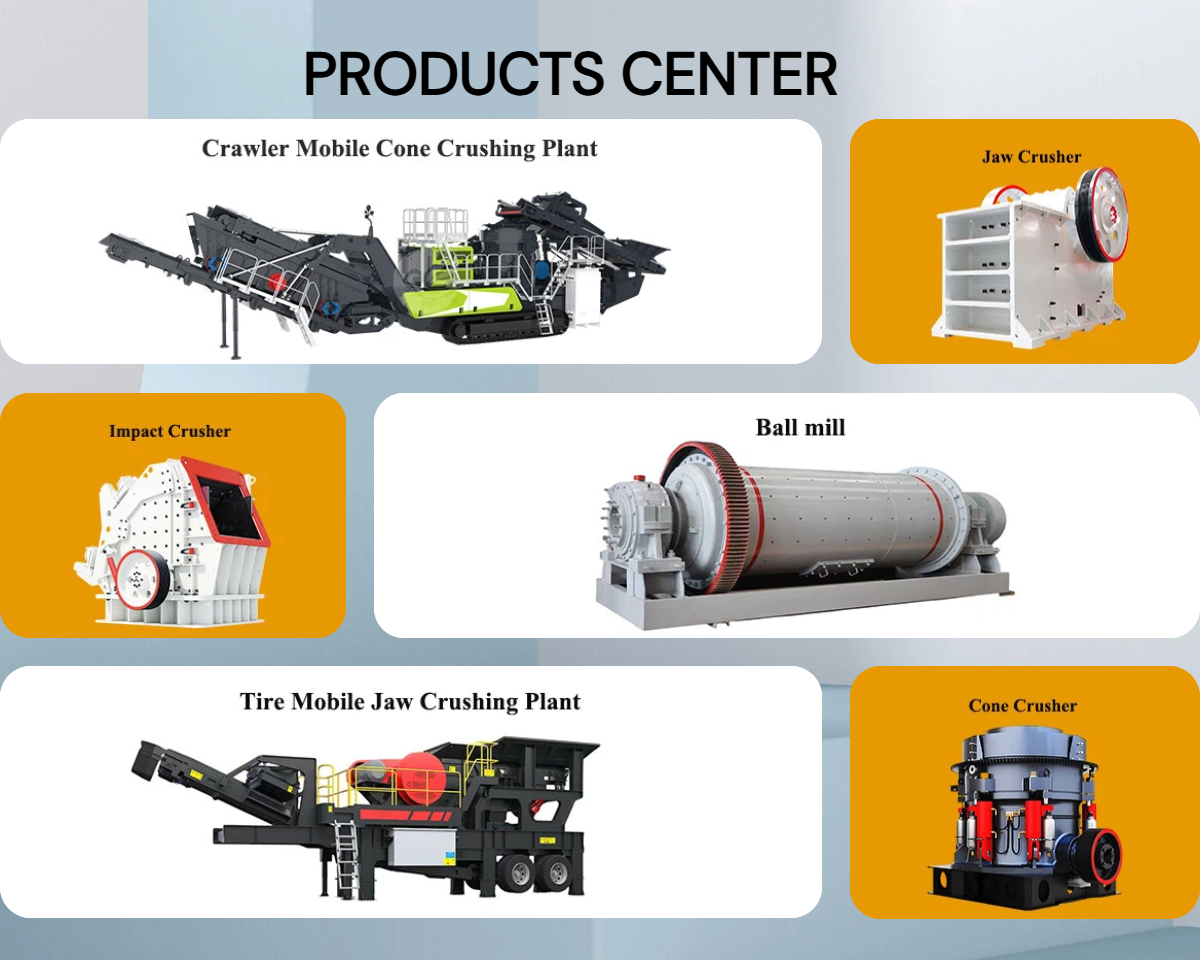 Principais produtos:Triturador de pedra móvel, moinho de bola, máquina de secagem
